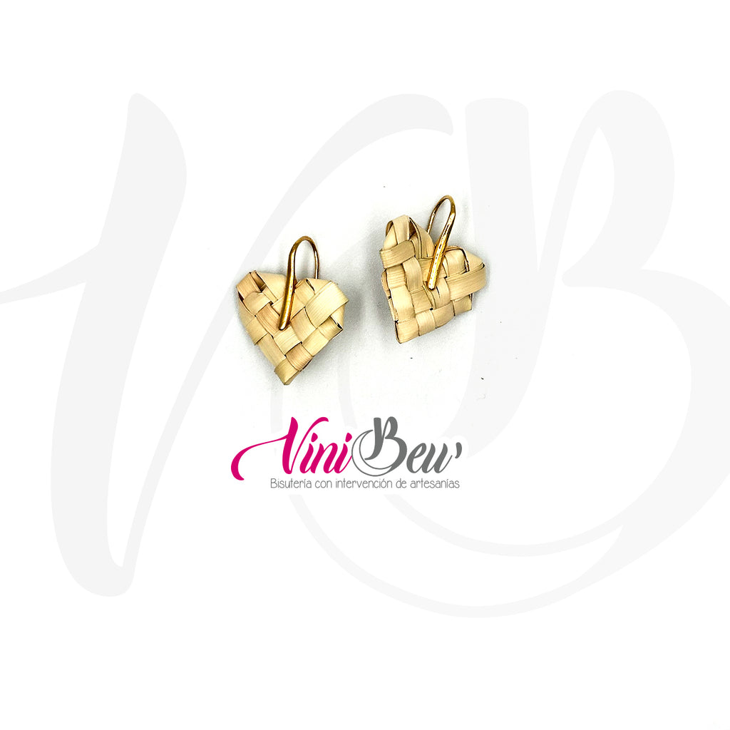 Mini arete de corazón de palma color natural con un poste de arete de chapa de oro. Lo más lindo y tierno.
