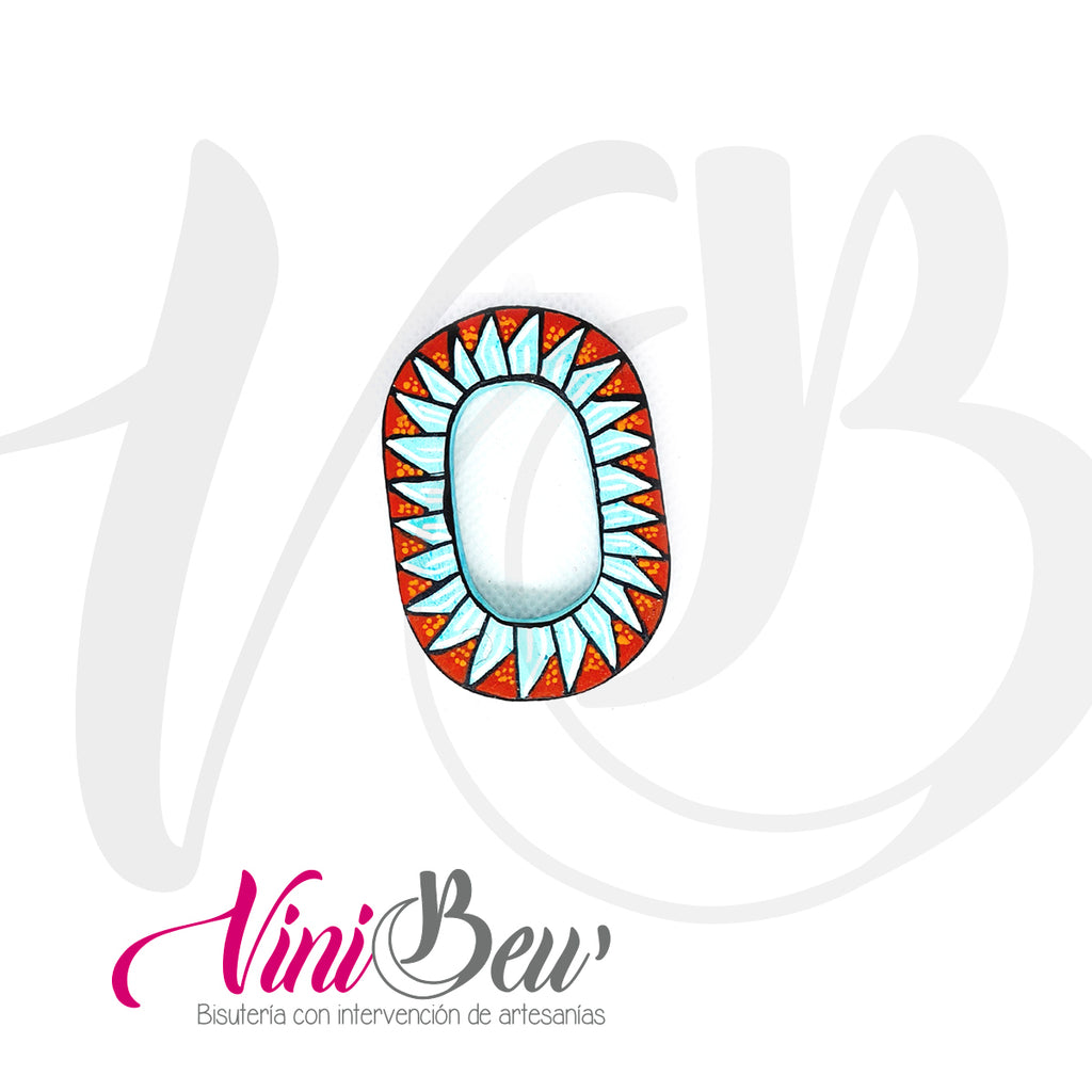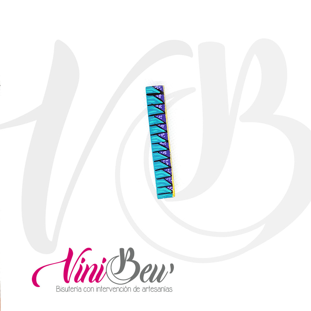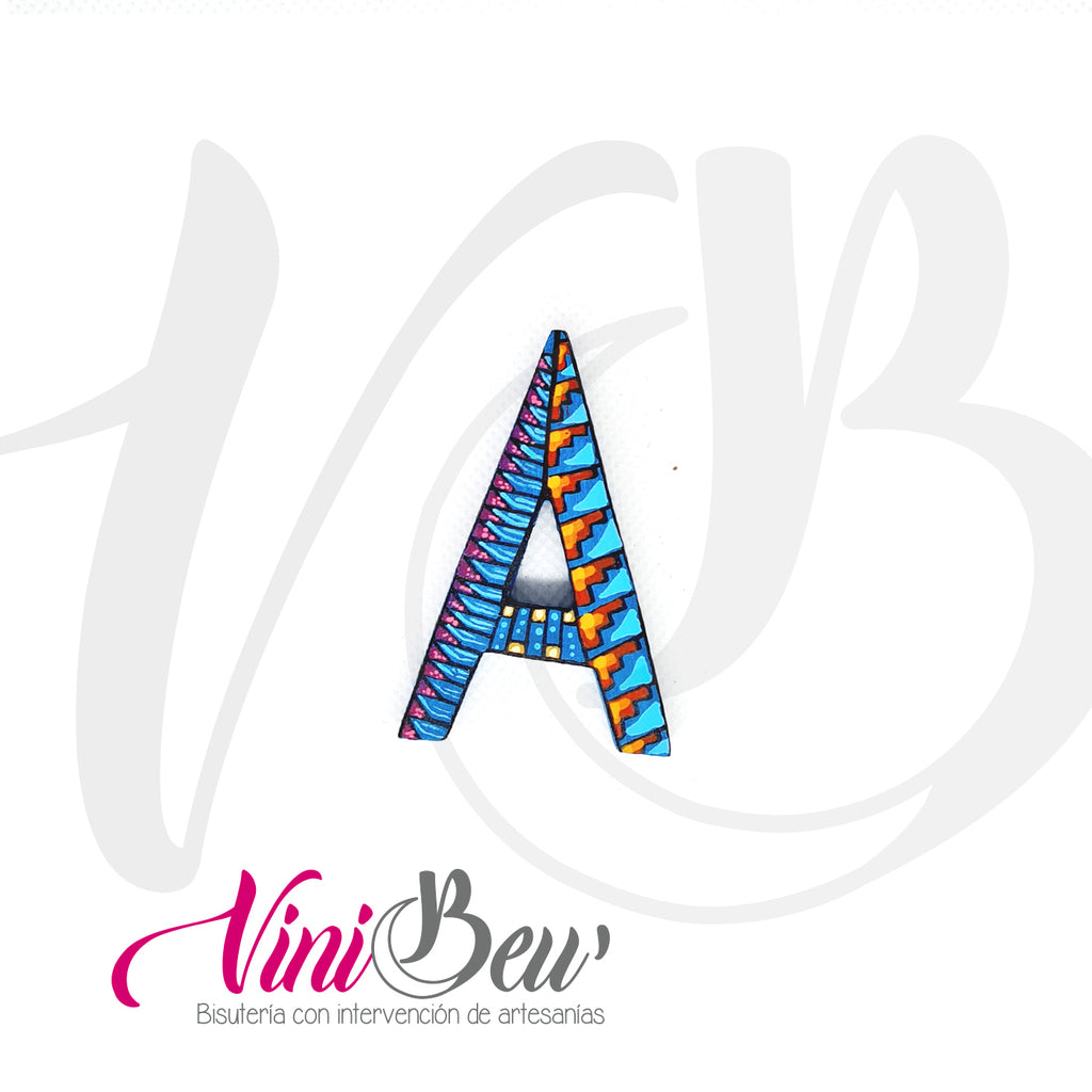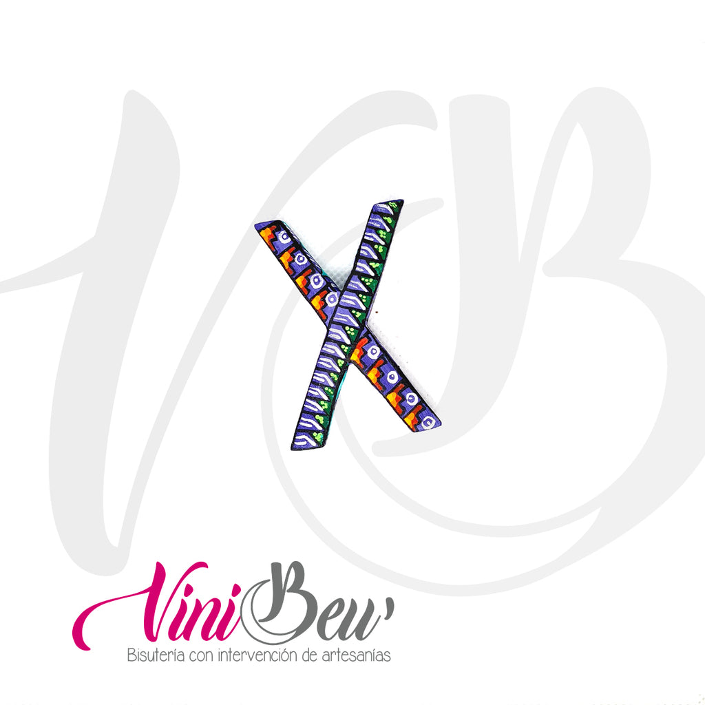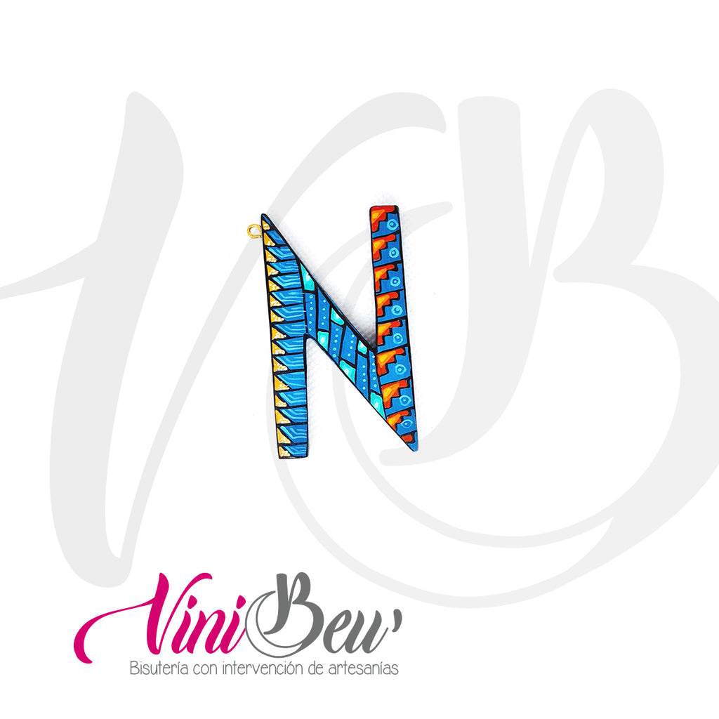 Moderno y exclusivo llavero con una letra de madera de copal tipo alebrije. Su diseño se complementa con un racimo de petatios de colores y dijes de pewter.