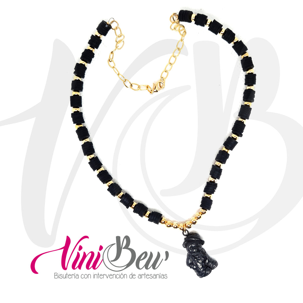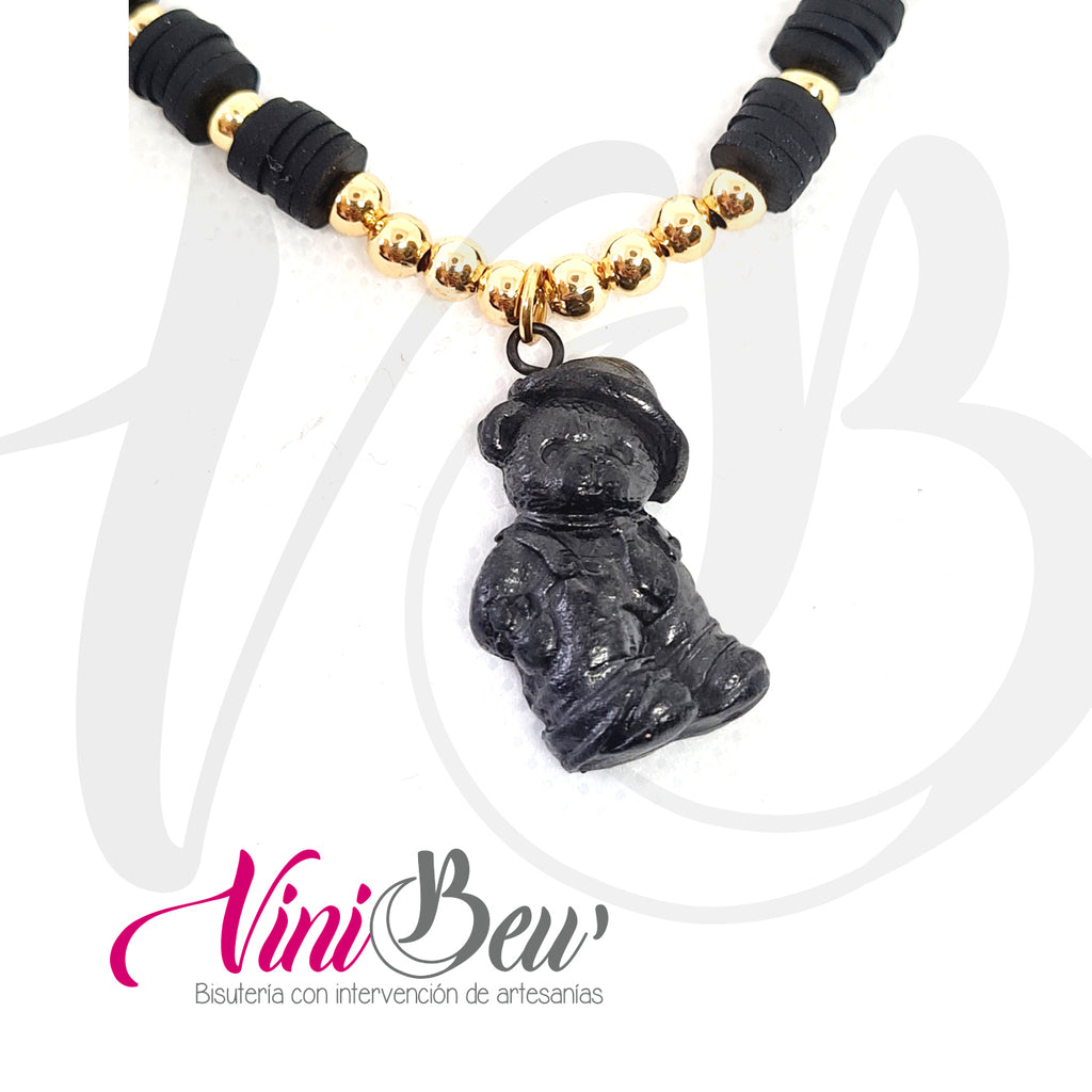 Collar Osito de Barro Negro